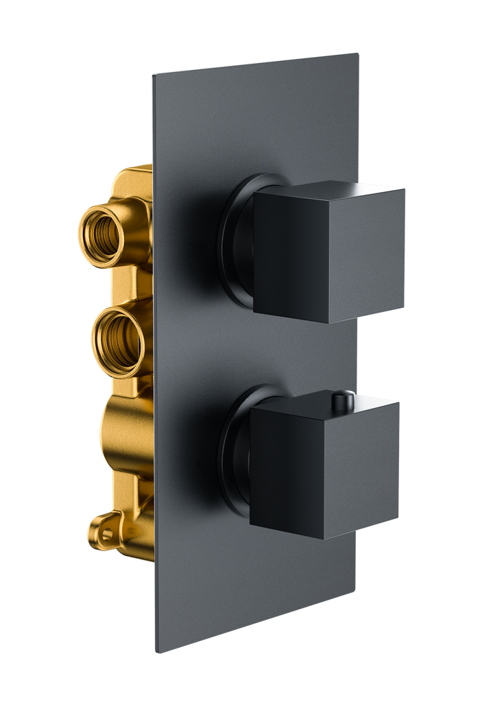 Bedgebury Double Outlet – Two Controls – Concealed Thermostatic Valve – Black