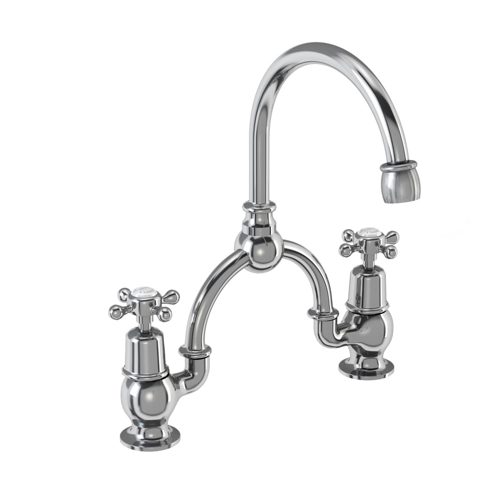 Burlington Claremont 2 Tap Hole Arch Mixer (230mm Centres) with Curved Spout – Chrome/White**