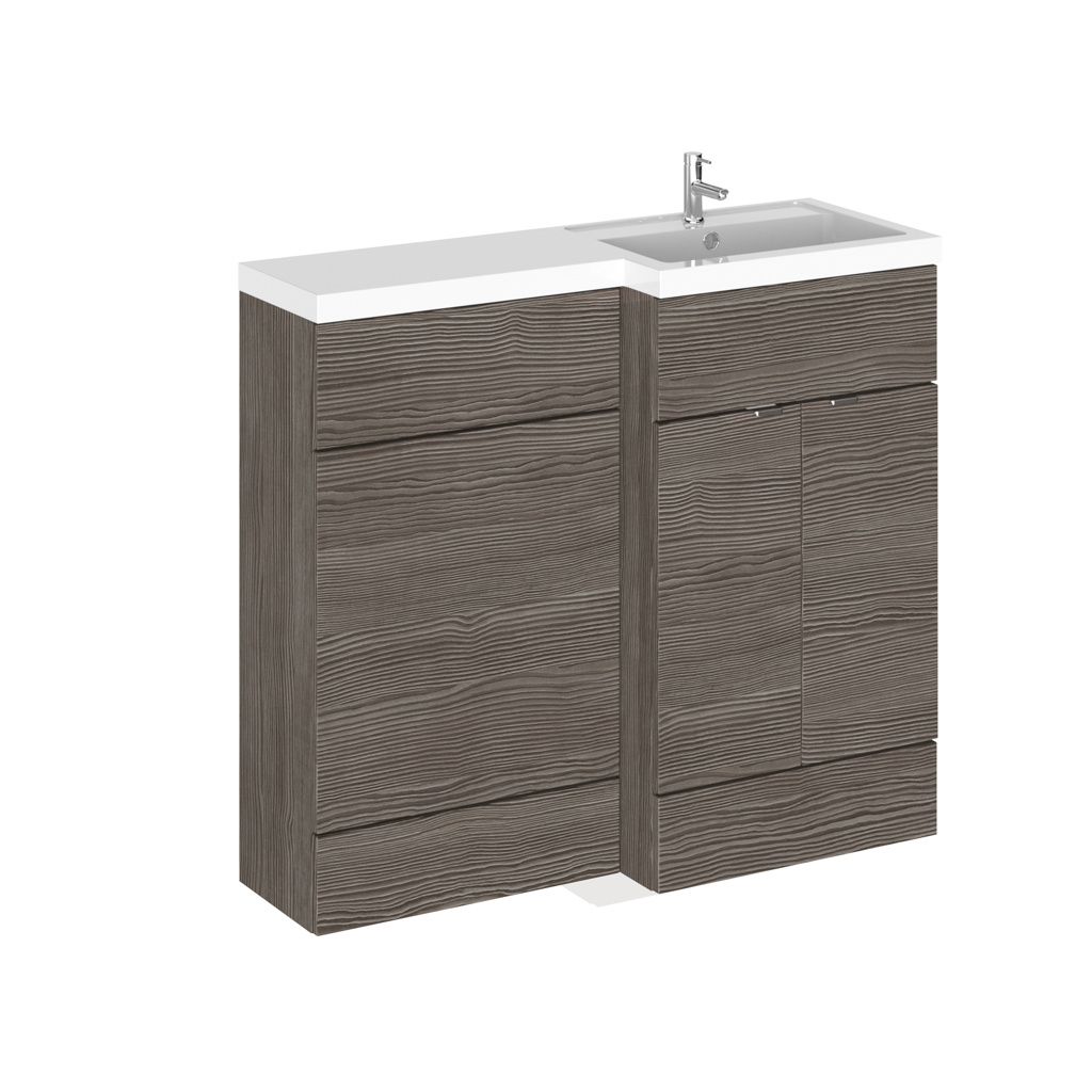 Hudson Reed Fusion 1000mm Full Depth RH Basin Unit, Basin & Slim WC Unit – Brown Grey Avola