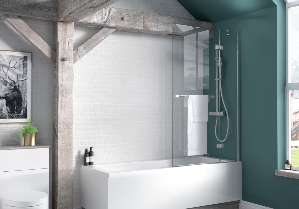 Inspire Two Panel Out Swing Bathscreen – Right Hand with Towel Rail (6mm)
