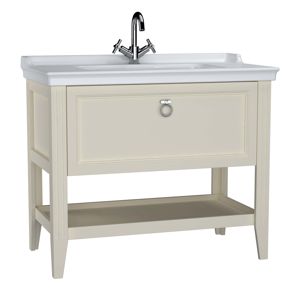 VitrA Valarte 100cm Wash Basin & Unit 1 Drawer – 1 Tap Hole – Matt Ivory