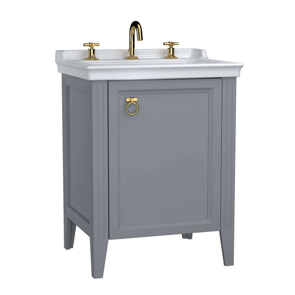 VitrA Valarte 65cm Washbasin & Unit 1 Door Left Hand Hinged – 3 Tap Hole – Matt Grey
