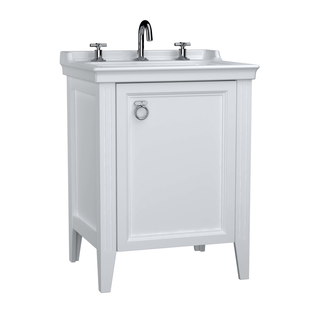 VitrA Valarte 65cm Washbasin & Unit 1 Door Left Hand Hinged – 3 Tap Hole – Matt White